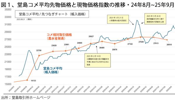 「堂島コメ先物」は、24年8月に上場以降、1日の総取引高は最高でも1,100枚(1枚当たり3トン相当)、平均では600枚程度で、年間では約50万トン、年700万トンのコメ現物流通量の1割にも満たない。参加者もきわめて限定的で、5社の商品先物会社と、日産証券、SBI証券などに限られている。